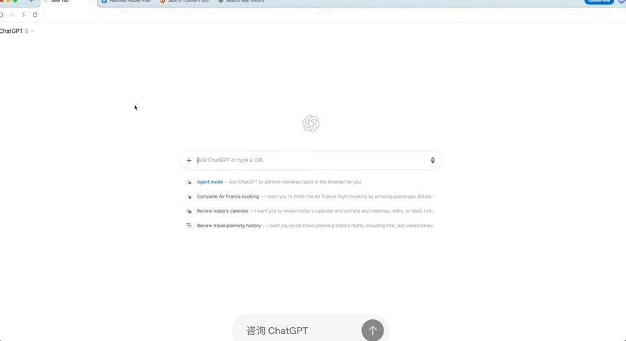 第五则是Agent模式。该模式结合你的浏览上下文,速度更快、实用性更强,能更好地进行研究与分析、自动化任务,以及在你浏览时规划行程或预订预约。